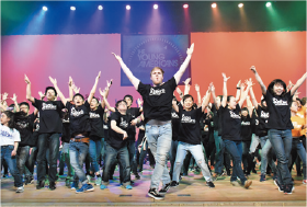 言葉の壁を越え歌と踊りで一体に - ヤングアメリカンズ(YA)は、音楽を通じた教育ワークショップ「ミュージック・アウトリーチ」に取り組む米国の非営利団体。現在、春・夏・秋の年3回、オーディションで選ばれたYAメンバーが来日し、日本の各地を回るツアーを実施している。小学生から高校生までの受講生が、YAメンバーと共に歌やダンスのショーをつくり上げる基本3日間のワークショップを通じて、自らを自由に表現する楽しさや、言葉の壁を越えて仲間と協働することの素晴らしさを学んでいる。