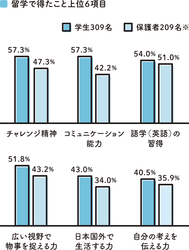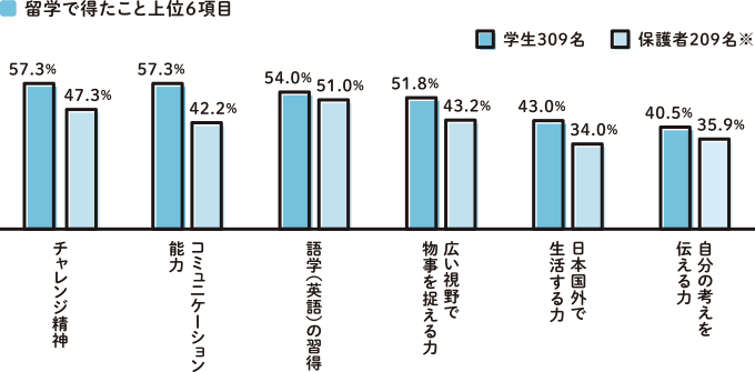 ※保護者から見て、留学した我が子が得たと思うことを回答