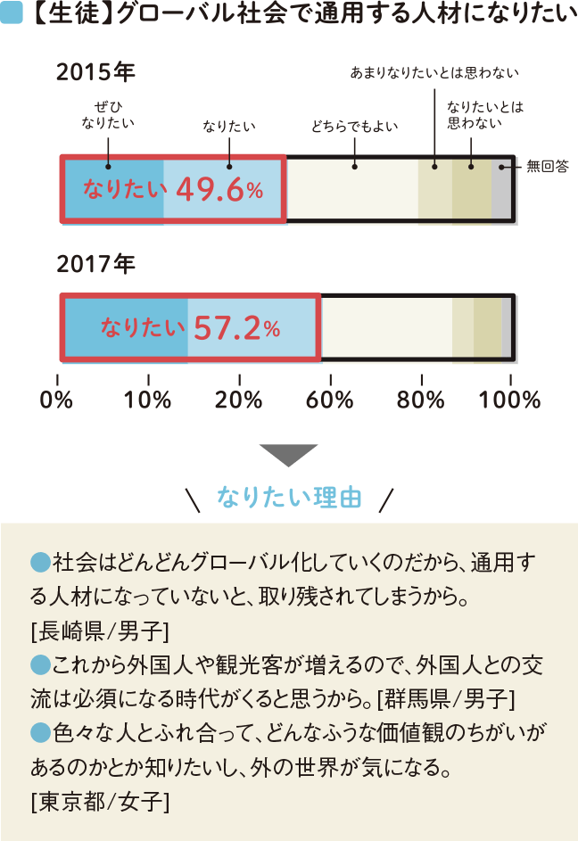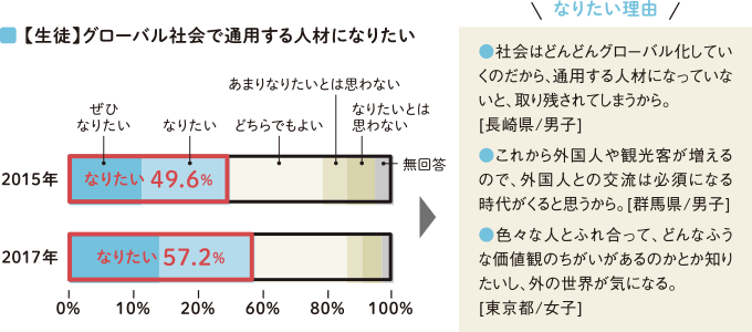高校生は「グローバル社会で通用する人材になりたい」が約6