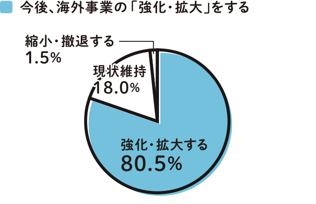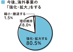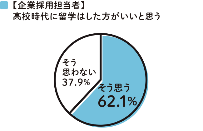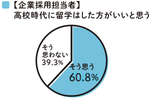 8割以上の日本企業が、今後海外事業を強化・拡大する意向を持っています。また、採用担当者も留学経験を評価しており、高校時代の留学を望む声がなんと6割超にも達しています。