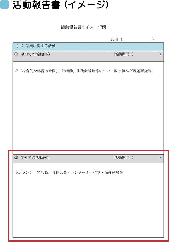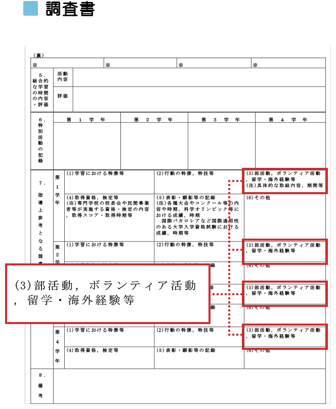 「指導上参考となる諸事項」の欄が拡充され「(3)部活動、ボランティア活動」の欄に留学・海外経験が追記されたほか、枚数制限も撤廃。