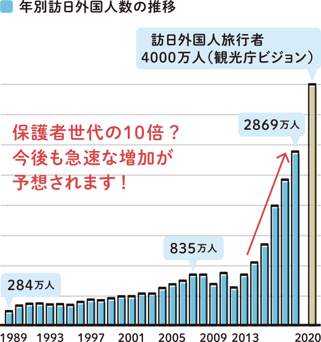 訪日観光客の急激な増加に見られるように、これからの子どもたちは、これまで以上にグローバル化の波にさらされていきます。