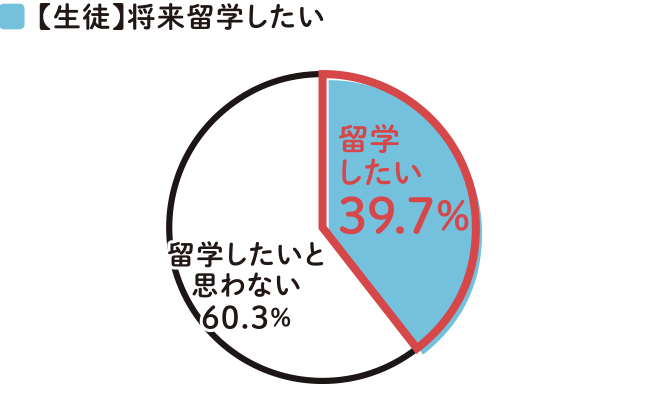 割、「将来留学したい」が約4割と、グローバルや留学への関心は高い。