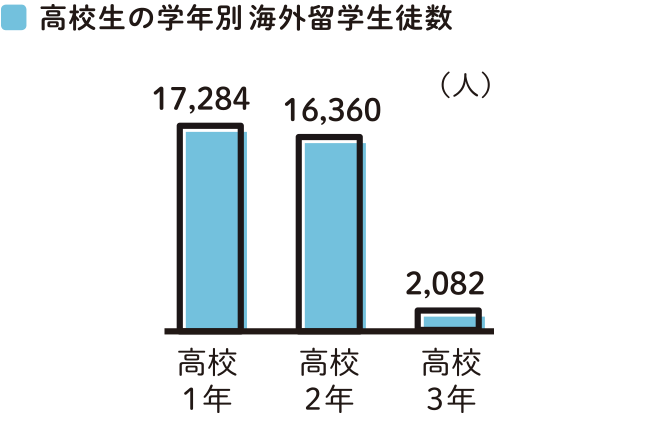 一方で、高校時代の留学は高1・高2に集中する傾向があり、高3での留学も検討していきたいところ(高3留学事例参照)。