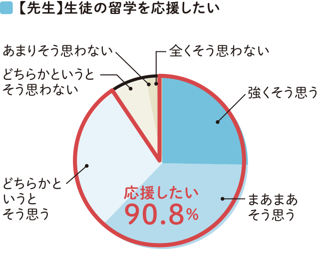すでに生徒の留学を応援したいという先生は約9割と非常に多い。