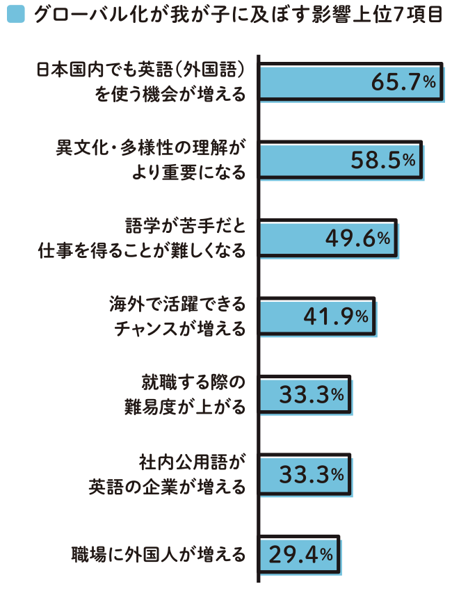 そういった社会の変化を受け、保護者も我が子へのグローバル化の影響を強く意識するようになってきています。